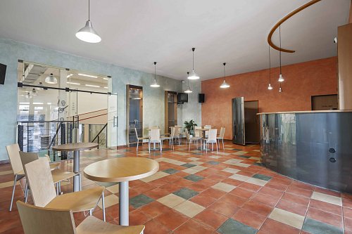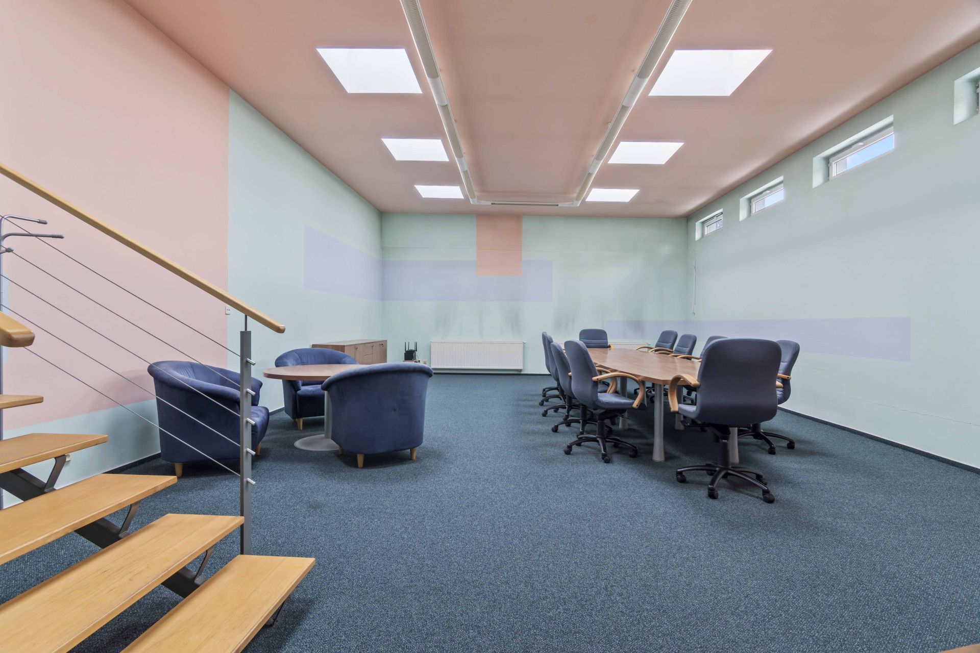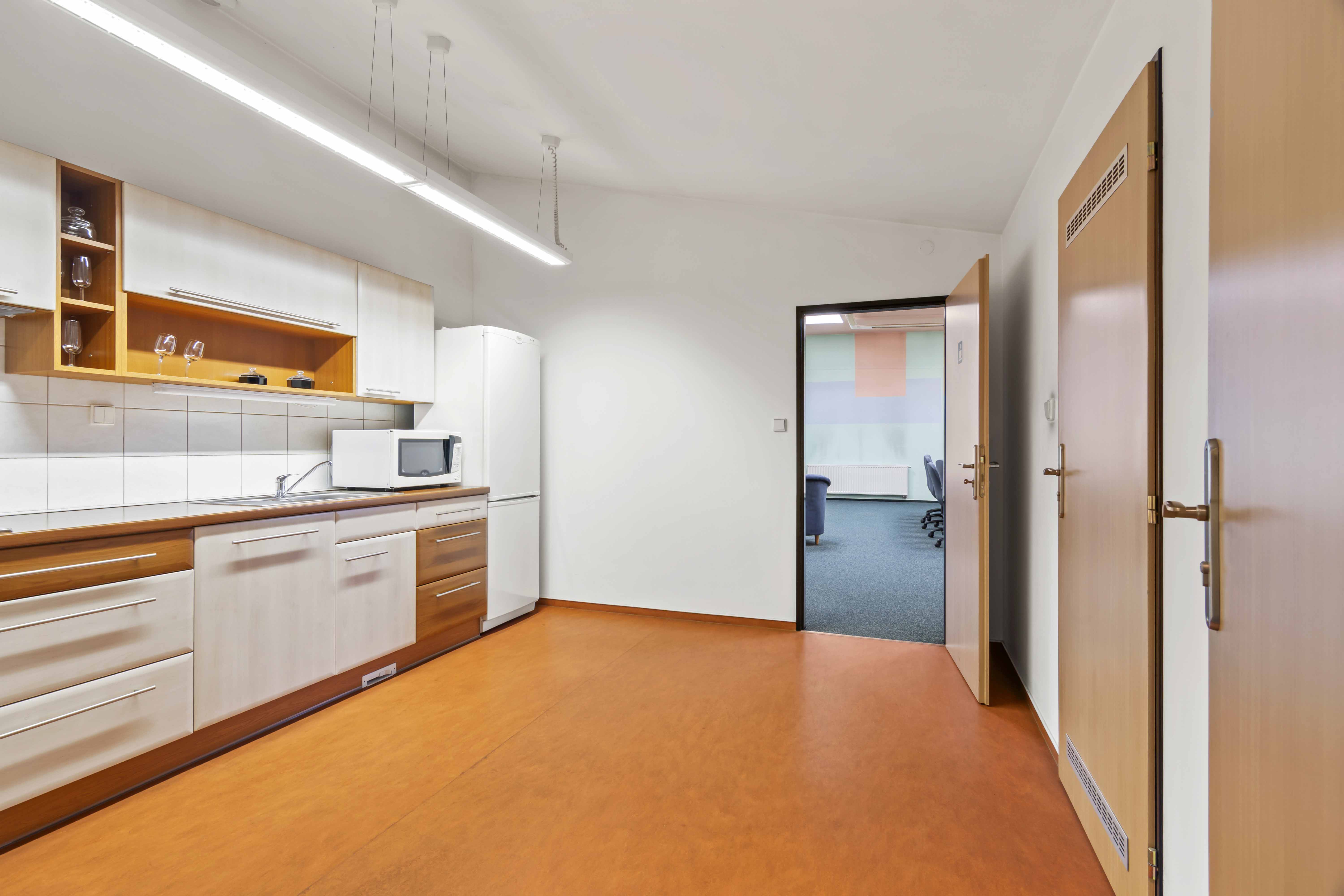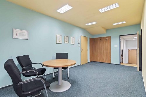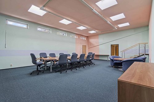 Zasedací místnosti, kuchyňky a archivy.Sociální zázemí na každém patře.