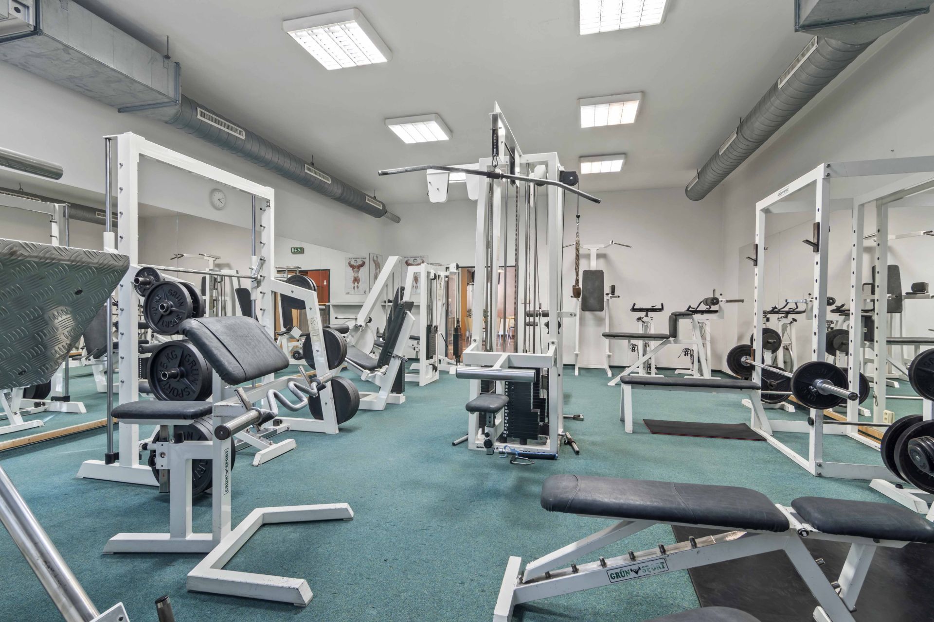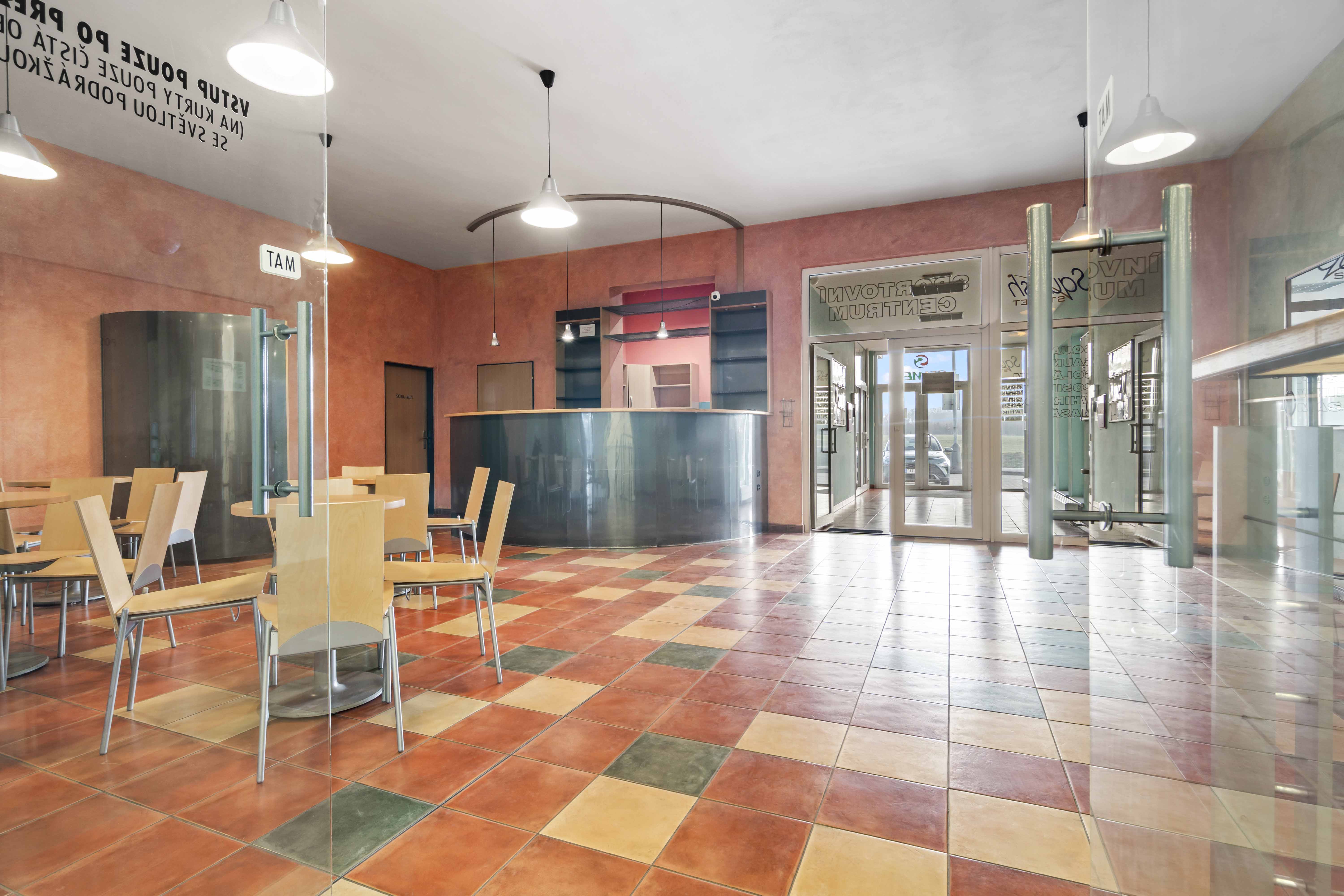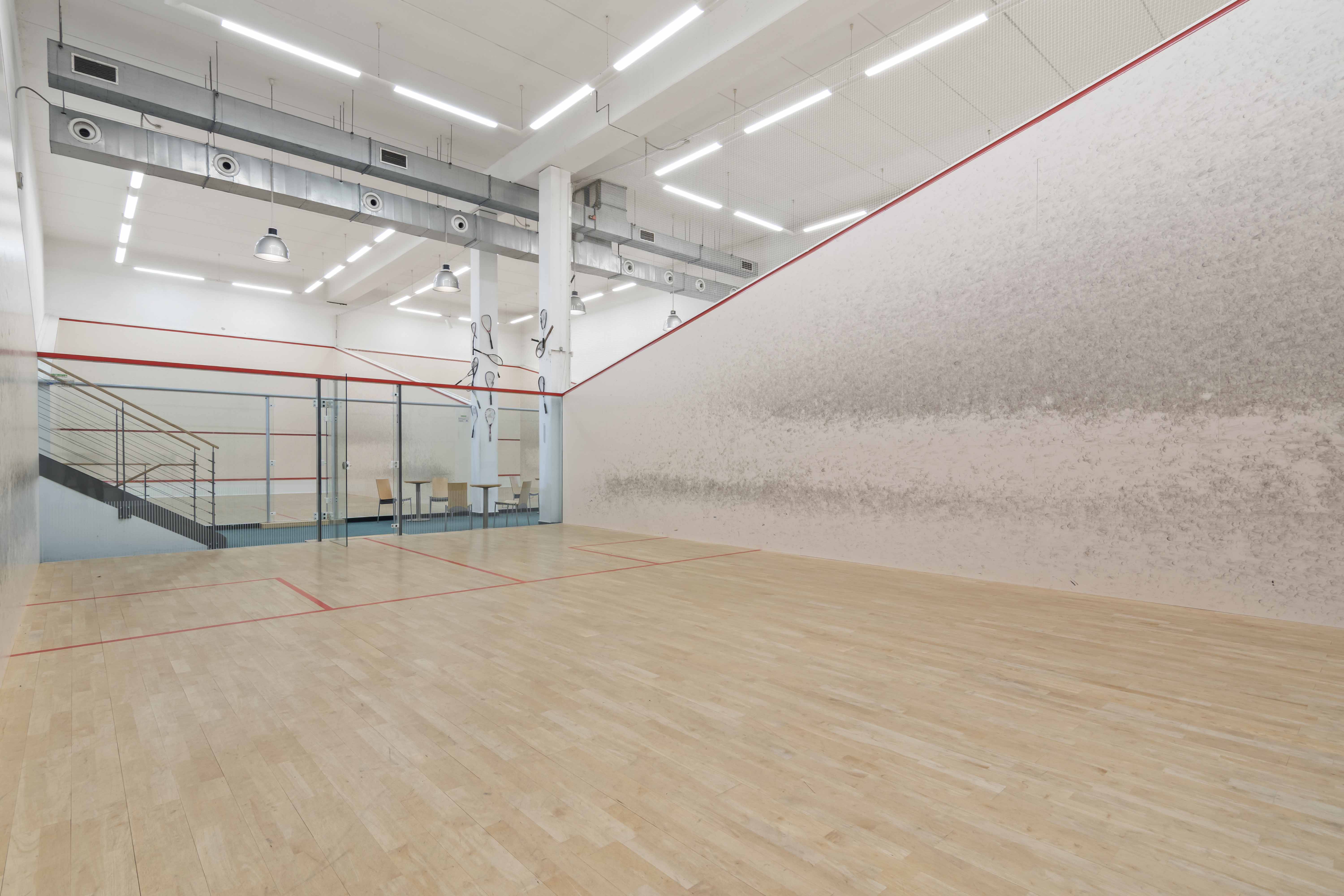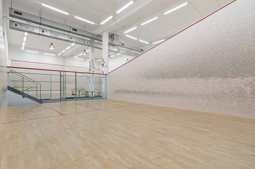 Přízemí (1. NP 541m2: Sportovní srdce objektu 4 squashové kurty s výškou přes dvě podlaží.Prostory pro posilovnu.Reprezentativní recepce se zázemím a barem.Šatny a sprchy pro sportovce.